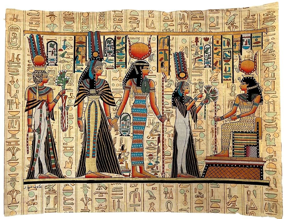 Lotus flowers in Ancient Egyptians' hands, Ancient Egyptian papyrus