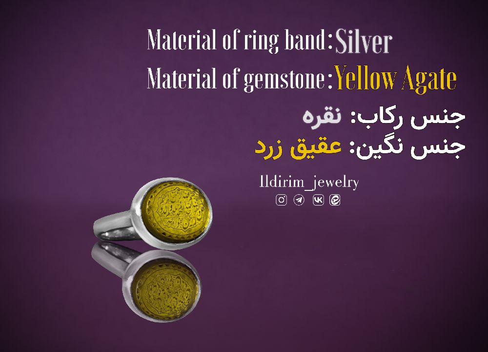 Surah Al-Ikhlas Yellow agate hand-engraved ring in Ildirimjewelry store: