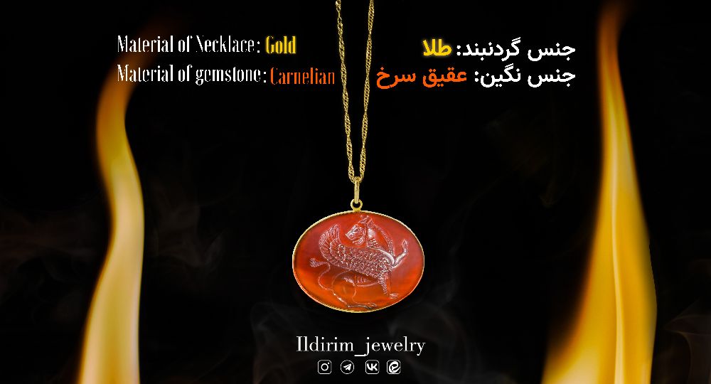 Persian Griffin(Shirdal) hand-engraved Carnelian necklace in Ildirimjewelry store: